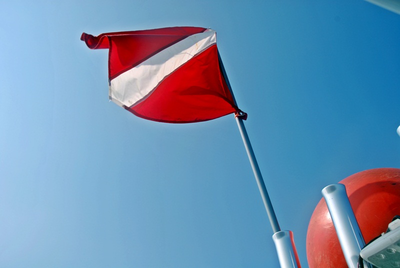 Being highly visible to boaters is critical to keeping divers and snorkelers safe in the water.diver down flag scalloping 2016